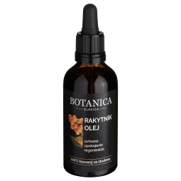 Rakytníkový olej Botanica Slavica predstavuje cenný zdroj antioxidantov a vitamínov pre všetky typy pleti. Výborne sa postará o pleť či pokožku postihnutú kožnými nedokonalosťami, zápalmi, akné, ekzémami, rosaceou a dermatitídami, ale aj suchú a zrelšiu pokožku prahnúcu po povzbudení. Oživuje a rozžiaruje mdlú a povädnutú pleť, prináša úľavu od nepríjemných pocitov podráždenia, svrbenia a začervenania, predchádza dehydratácii a zabezpečuje optimálnu úroveň tvorby kožného mazu. Chráni bunky pred voľnými radikálmi a pomáha predchádzať predčasnému starnutiu pokožky. Podporuje elasticitu a účinne vypína línie pokožky, výrazne ju zvláčňuje a zlepšuje jej celkový stav aj vzhľad. Vysoký obsah karoténov podporuje jednotný farebný tón pleti.