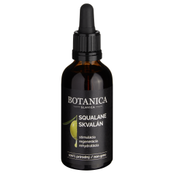 Olivový skvalén Botanica Slavica predstavuje unikátny skrášľujúci suchý olej získavaný z olív. Táto látka sa prirodzene nachádza v pokožke a pleti a tvorí dôležitú súčasť hydrofilného filmu. Silne stimuluje prirodzené regeneračné schopnosti pleti, vyživuje a hydratuje kožné tkanivá. Obmedzuje sklon k vysušovaniu, redukuje a predchádza tvorbe vrások, eliminuje tvorbu suchých šupín. Ľahko preniká do vrstiev kože, dodáva jej pružnosť a elasticitu, zvyšuje jej priepustnosť vlahy a uľahčuje transport aktívnych zložiek. Vlasy zjemňuje, dodáva im pružnosť a pevnosť, kým pokožku hlavy hydratuje.